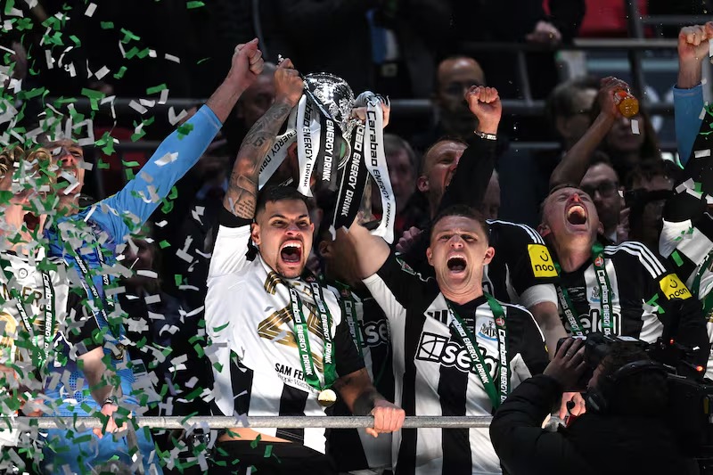 Newcastle United ended a 70-year domestic trophy drought with a thrilling 2-1 victory over Liverpool in the Carabao Cup final at Wembley. Goals from Dan Burn and Alexander Isak secured a historic moment for the Magpies, marking their first major silverware since 1969 and a defining achievement in Eddie Howe’s tenure.
